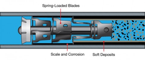 直径3/8インチから6インチ(約1~15cm)、長さ40フィート(約12m)までのあらゆるタイプのチューブから付着物を取り除きます。 コークス、カルシウム、硫黄、ボーキサイト、アスファルト、酸化物および焼きついたポリマーのような硬い堆積物を効果的に除去できます。